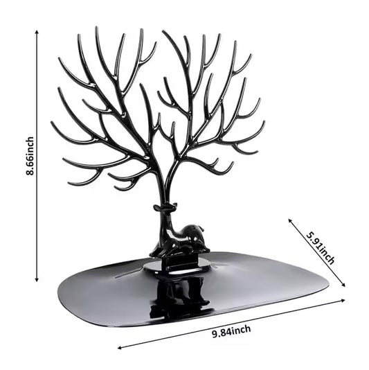 Plastic Deer/Antlers Jewelry Holder Deer Tree | Creative Deer Tree Tray Display Stand Holder (Black)