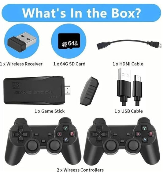 M8 4K HDMI Wireless Game Stick Console with 2 Wireless Controllers & 64GB SD Card, Plug & Play Retro Video Games for TV